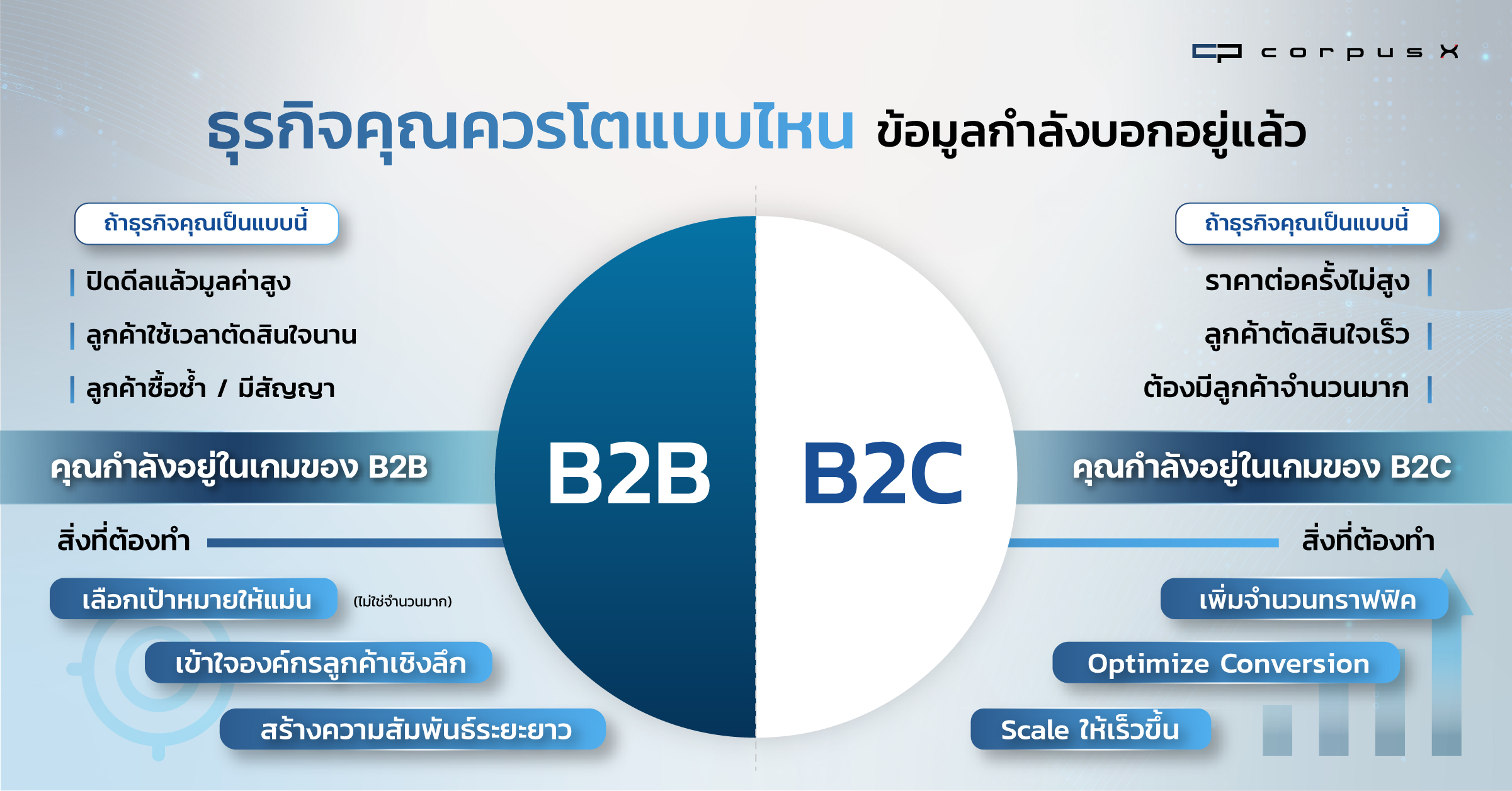บทความนี้จะช่วยให้เห็นว่า B2B และ B2C ต่างกันจริงๆ ตรงไหน ตัวเลขอะไรบอกว่าธุรกิจของคุณควรไปทางไหน และทำไมข้อมูลลูกค้าถึงเป็นคำตอบที่แม่นยำกว่าความรู้สึก