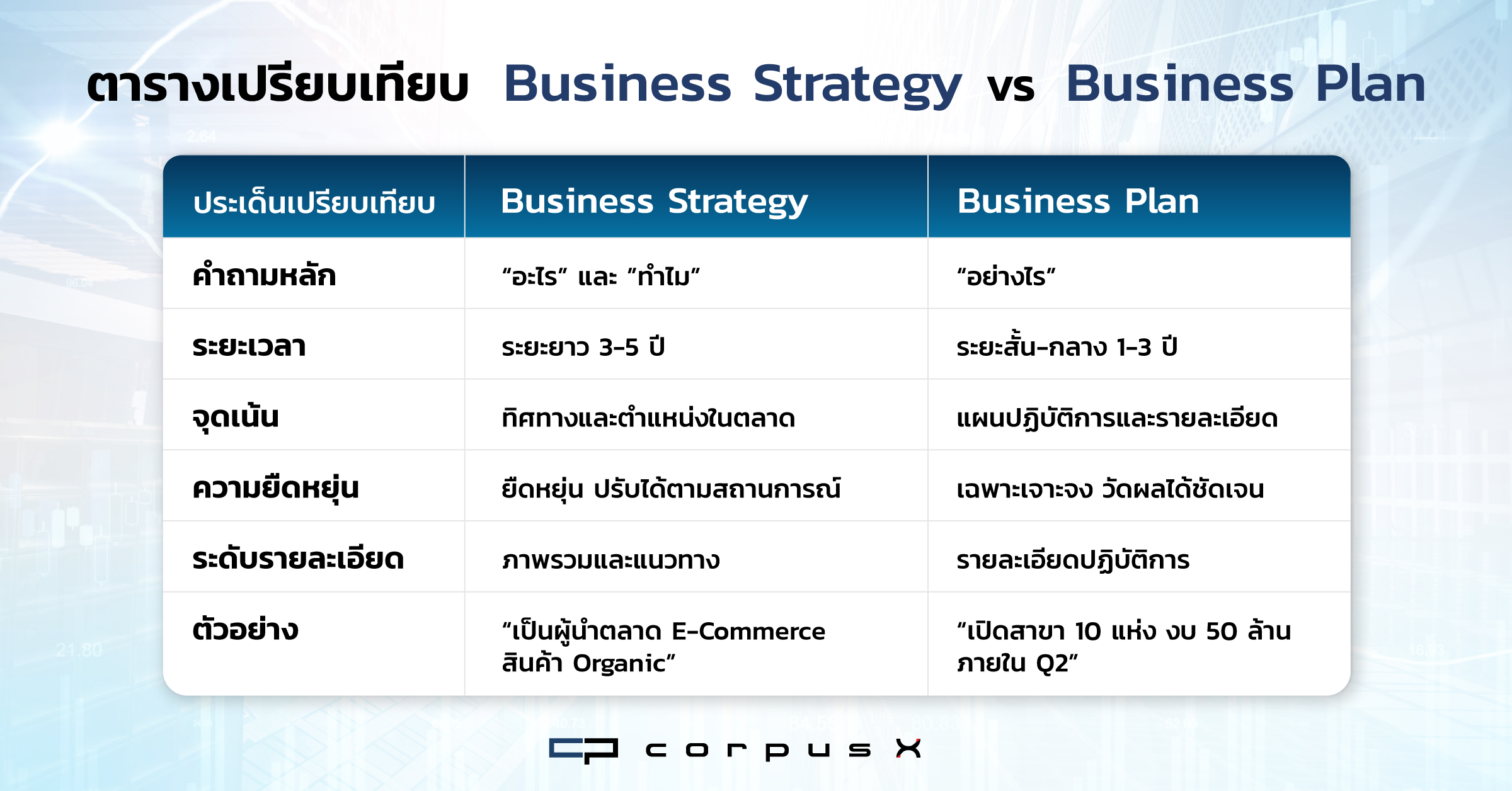 ประเด็นเปรียบเทียบ | Business Strategy | Business Plan |