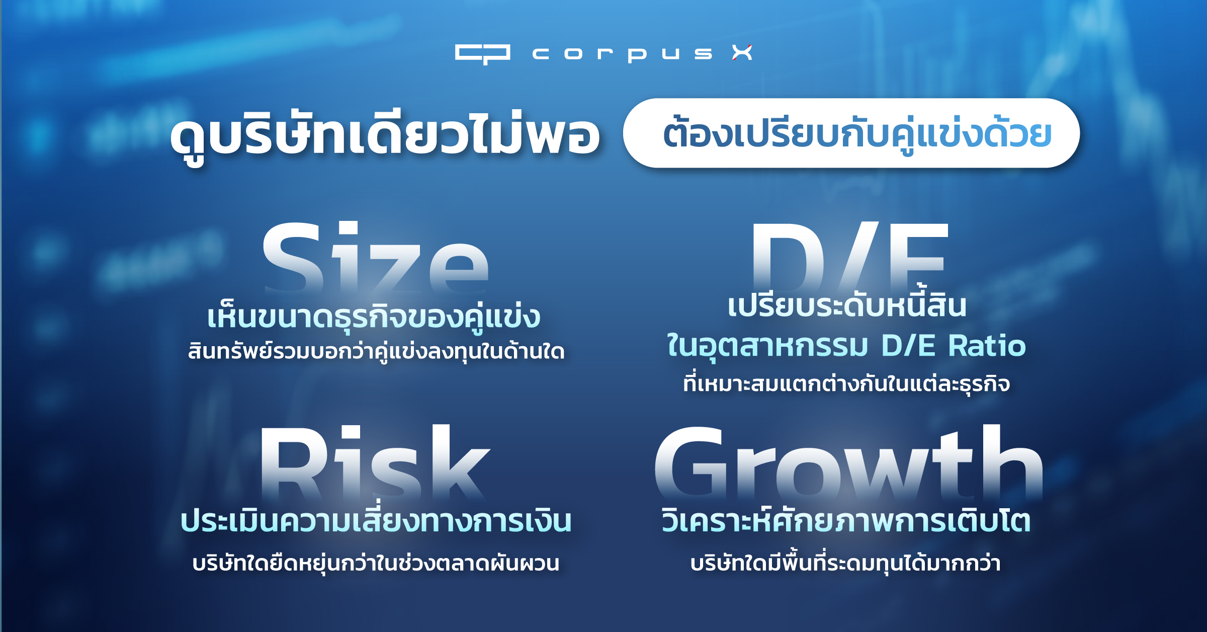 ขนาดธุรกิจของคู่แข่ง: สินทรัพย์รวมและโครงสร้างสินทรัพย์บอกว่าคู่แข่งลงทุนในด้านใด เช่น บางรายเน้นถือสินทรัพย์ถาวรเพื่อผลิต บางรายเน้นสินทรัพย์หมุนเวียนเพื่อรองรับการขยายตลาดอย่างรวดเร็ว ความแตกต่างเหล่านี้สะท้อนแนวทางการแข่งขันที่ต่างกัน