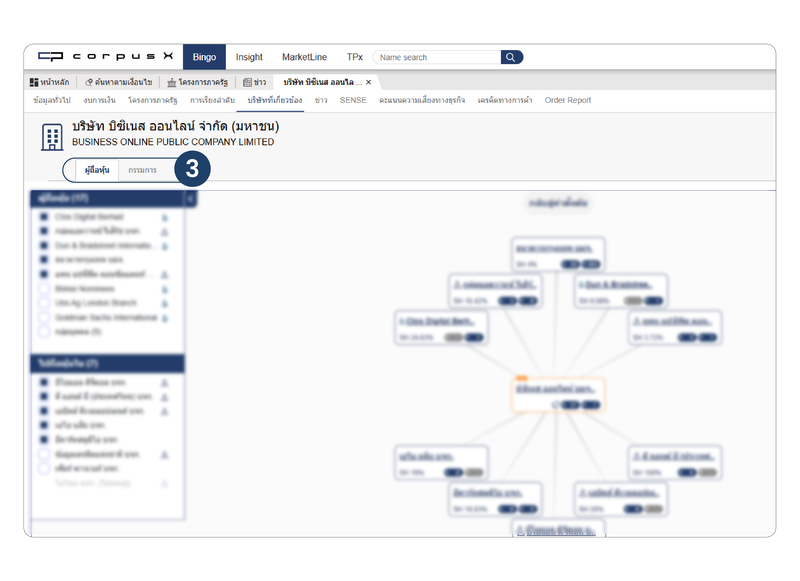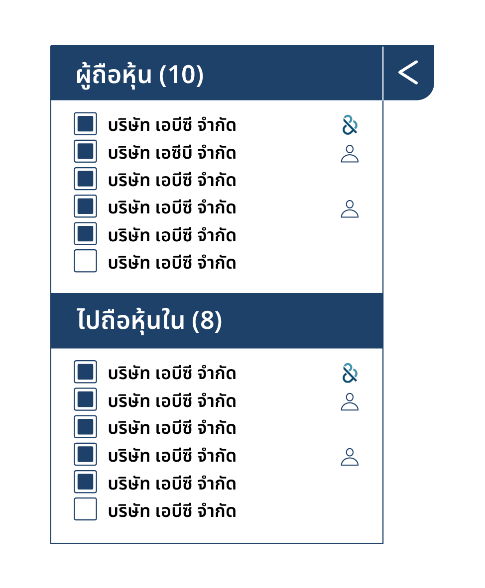 โดยข้อมูลถูกนำเสนอในรูปแบบแผนภาพ (Diagram) เข้าใจง่ายและโต้ตอบได้จริง ช่วยจัดการความซับซ้อนของการถือหุ้นไขว้ (Cross-holding)