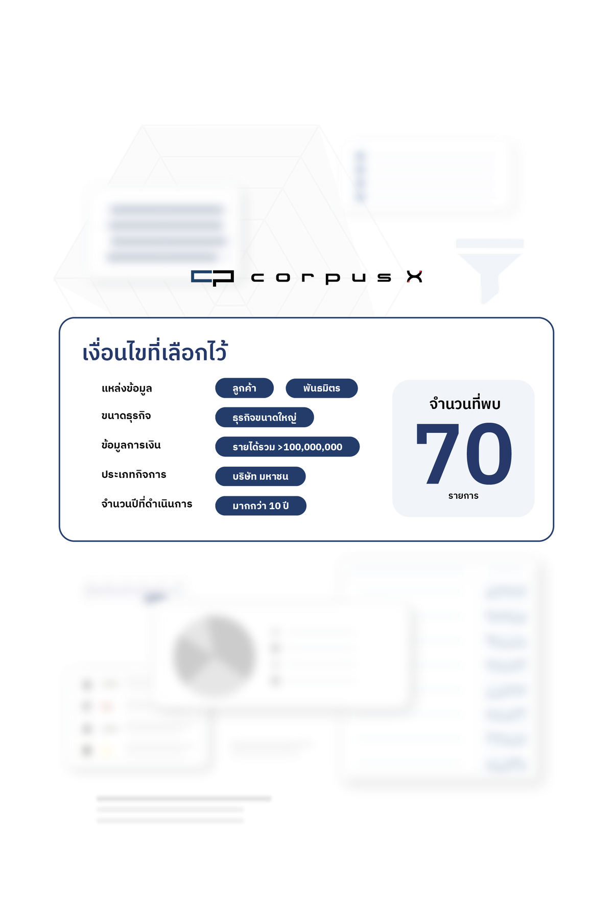 ระบุพื้นที่เป้าหมายได้ละเอียด (ระดับอำเภอ/เขต/จังหวัด) พร้อมกรองตามขนาดและรายได้ของบริษัท