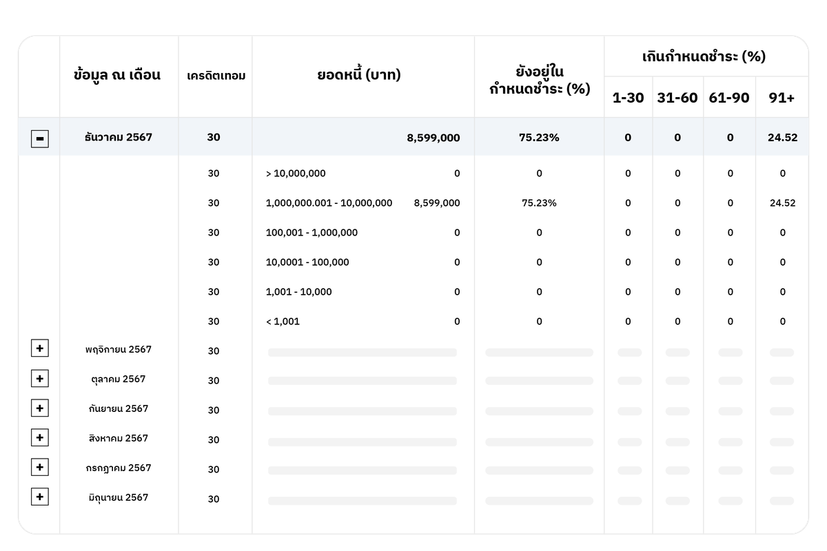 80-100 | ความเสี่ยงต่ำ | 0 - 30 วัน ก่อนถึงกำหนด |